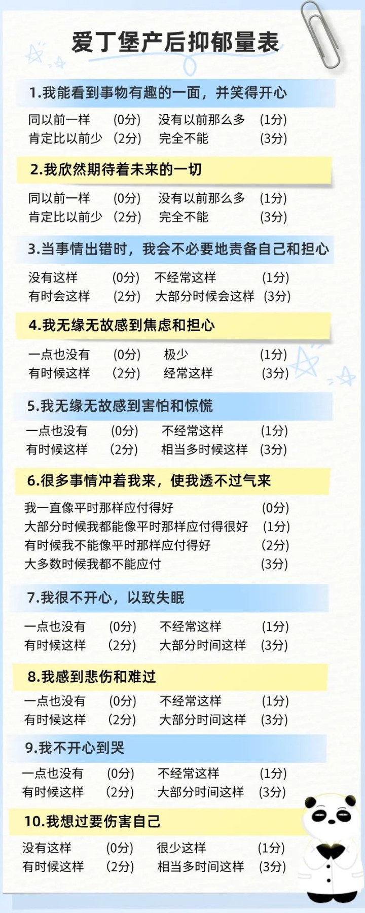 使用爱丁堡产后抑郁量表自测: